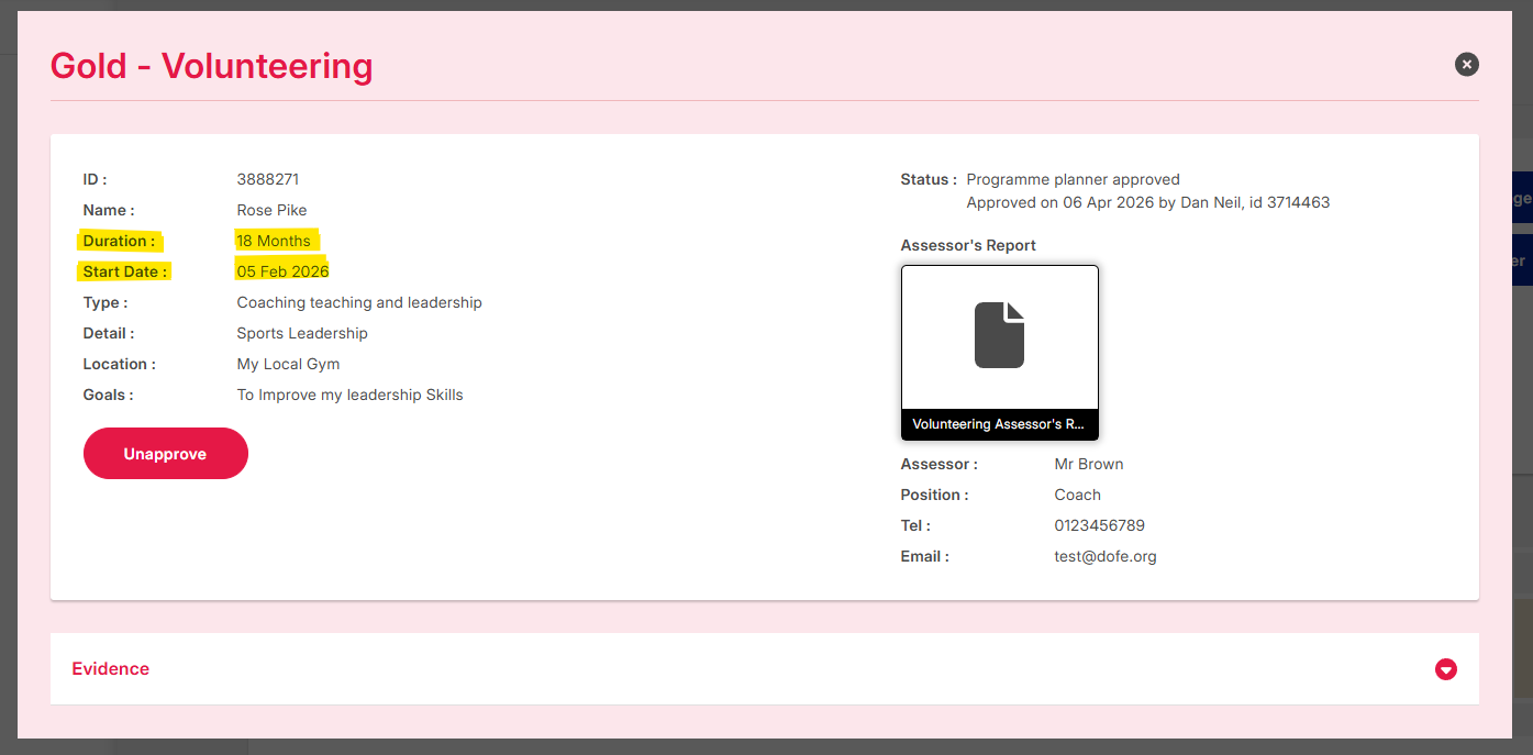 If you are unable to edit this date please contact the IT service desk eDofE@dofe.org and provide the participant's name and their eDofE ID Number.