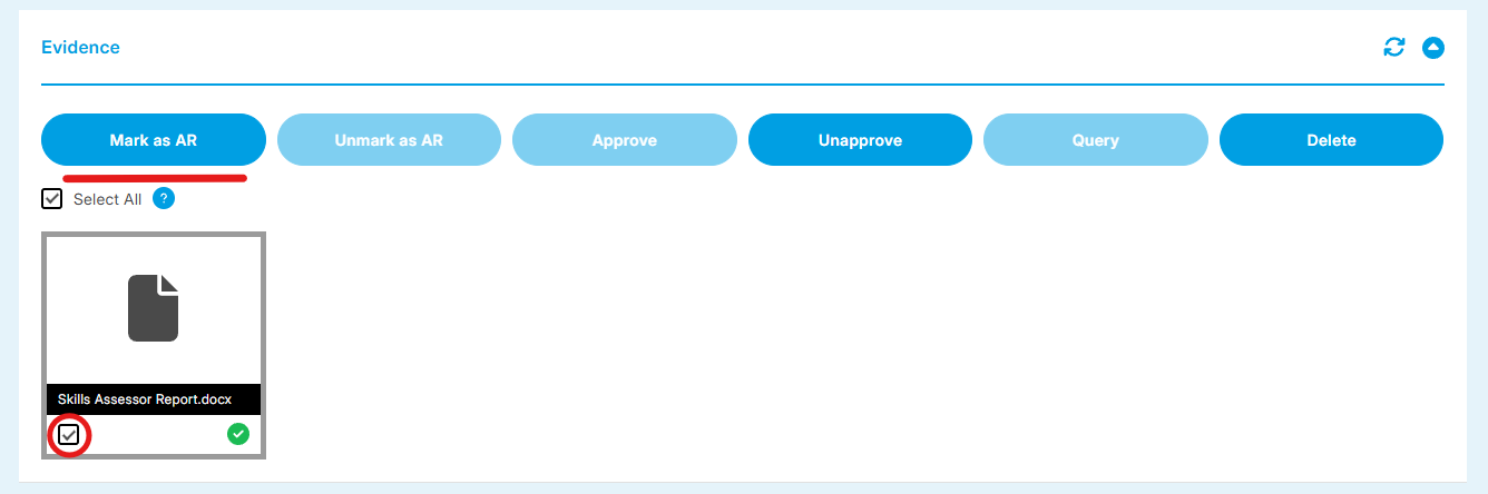 - Place a tick in the tick box located in the bottom left hand corner of the piece of evidence