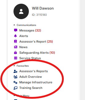 Each adult can edit the favourites that show in the left hand menu for quicker access.
