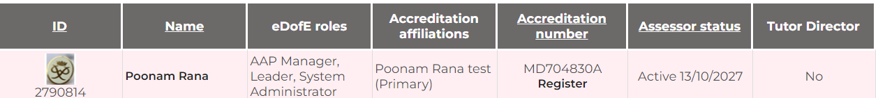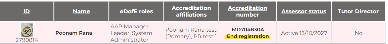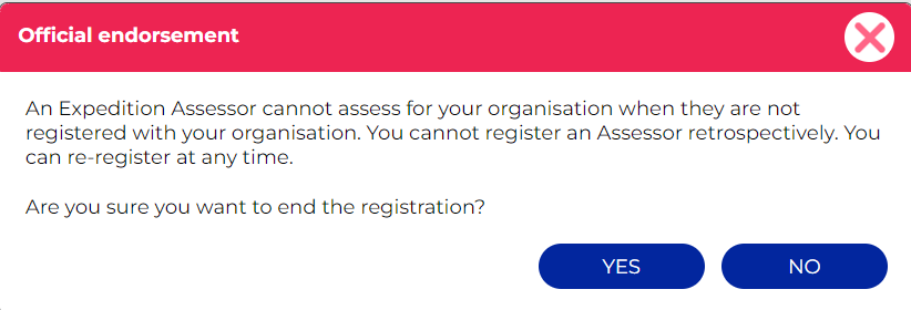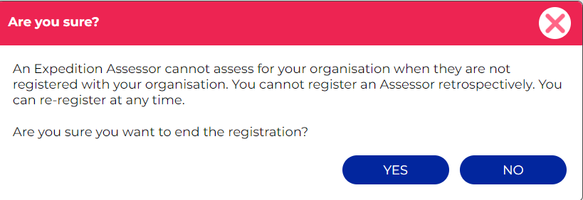 3. Once you click 'Yes', the registration end date will be set to today's date and you will no longer be able to view the assessors details: