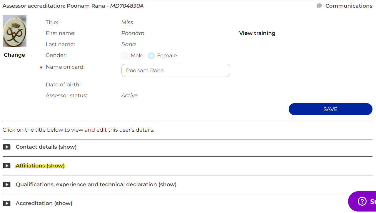 LO and AAP users with the 'Can add and edit Expedition Assessor accreditations' permission on their account can end an assessor's affiliation to their organisation. You will need to find the assessor via Training > Training Search and can end the registration by: