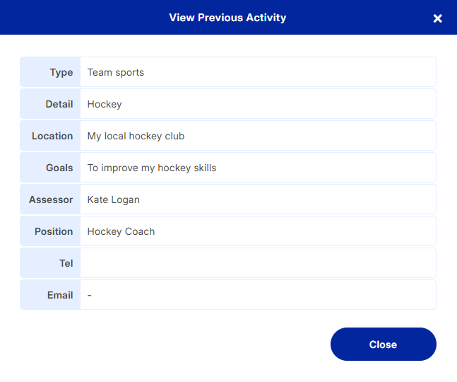 Once it's been approved, you can view the old activity by clicking the 'View Previous Activity' button.
