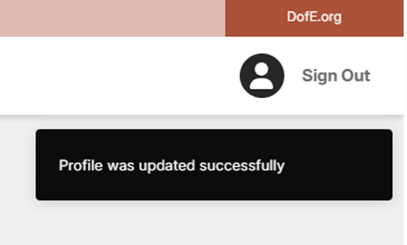 3. You will be redirected back to the ‘My Journey’ page and a confirmation message will be displayed in the top right corner of eDofE.