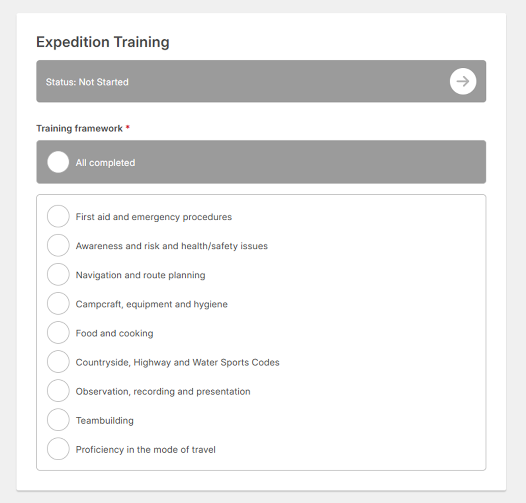 When your DofE Leader has approved your expedition training, the status will be updated to ‘Completed’.