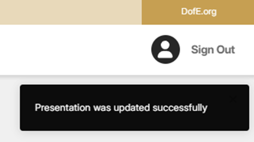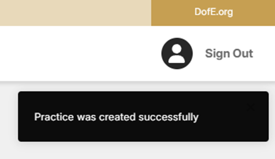 4. A notification will be displayed in the top right hand corner of eDofE, confirming the expedition training has been submitted successfully.