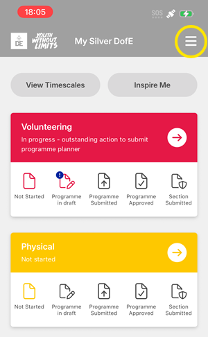 2. Choose the award you wish to see from this menu e.g. 'My Bronze DofE'