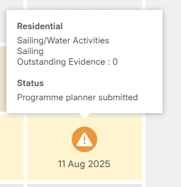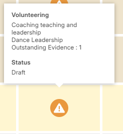 1. From the Manage Alerts page, click on the programme planner / evidence alert symbol (white warning triangle in an orange circle). This will open that section of the award.