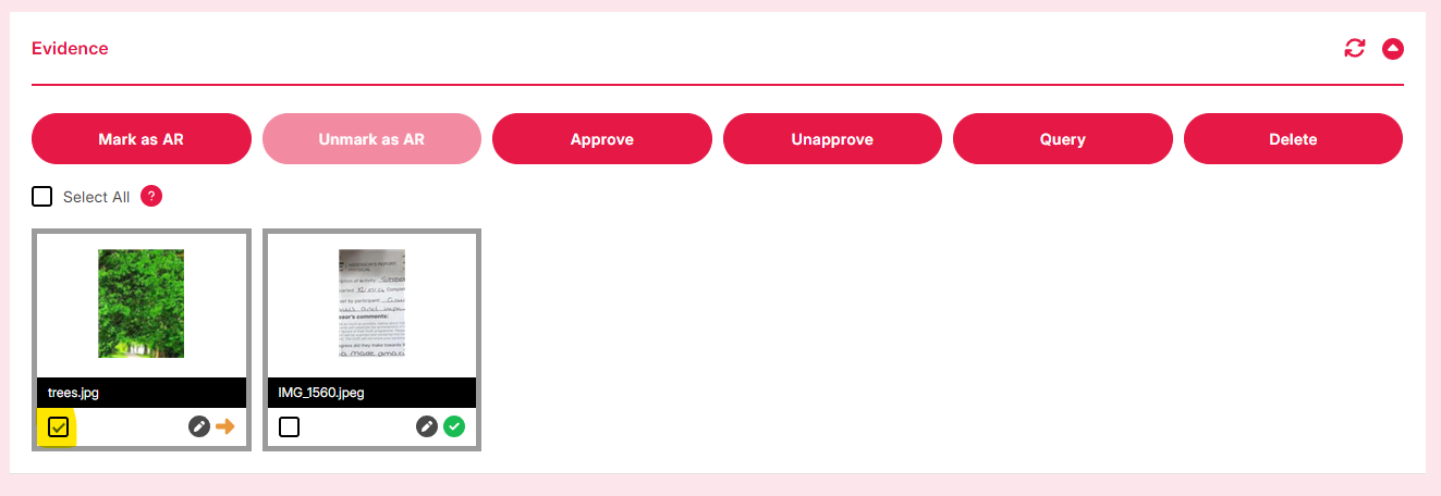 With the evidence selected you can then either 'Approve', 'Query' or 'Unapprove' it.