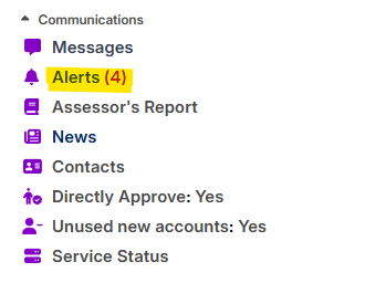 The red number next to 'Alerts' in the 'Communications' menu section indicates the number of participants who have outstanding evidence or programme planners awaiting approval. Please note that participants can have multiple pieces of evidence / programme planners awaiting approval.